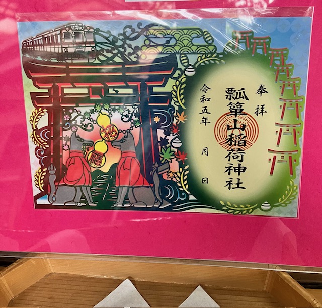 お稲荷さんとコラボしているのは、なんと近鉄電車!電車が描かれた御朱印とは、なんとも珍しいですね。